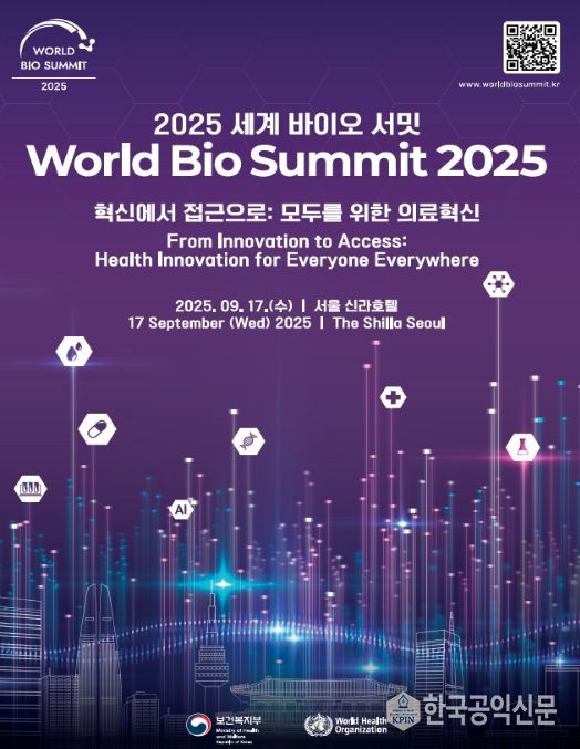 한국공익신문 관리자 기자 | 보건복지부는 세계보건기구(WHO, World Health Organization)와 공동으로 9월 17일 서울 신라 호텔에서 ‘혁신에서 접근으로: 모두를 위한 의료 혁신’을 주제로 '2025 세계 바이오 서밋(WORLD BIO SUMMIT 2025)'을 개최한다고 밝혔다.