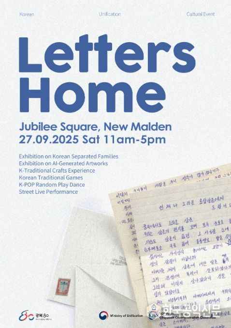 한국공익신문 관리자 기자 | 통일부는 9월 27일, 영국 최대 한인 밀집 지역인 뉴몰든에서 ‘Letters Home’(집으로 보내는 편지)을 주제로 한 재외동포 통일문화행사를 개최한다.