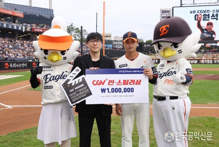 한국공익신문 관리자 기자 | KBO와 CGV가 공동 제정한 ‘월간 CGV 씬-스틸러상’의 9월 수상자로 한화 이글스의 이원석이 선정됐다.