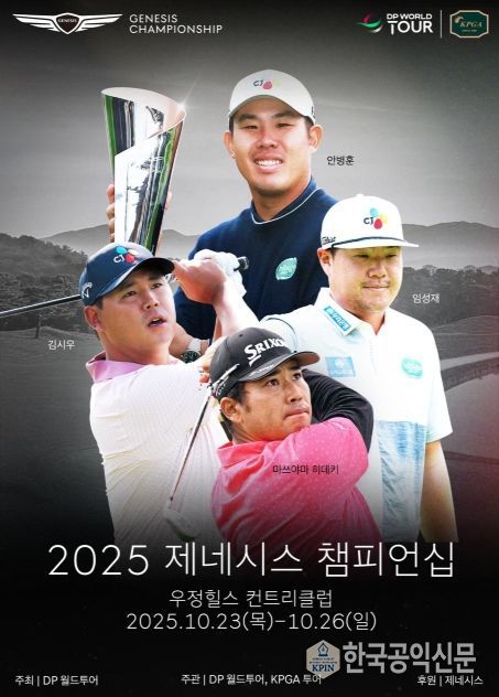 한국공익신문 관리자 기자 | 23일 남았다. ‘제네시스 챔피언십’이 다음 달 23일부터 26일까지 충남 천안 소재 우정힐스CC에서 펼쳐진다. 지난해에 이어 KPGA 투어와 DP월드투어가 공동 주관한다. 총상금은 400만 달러 규모다.