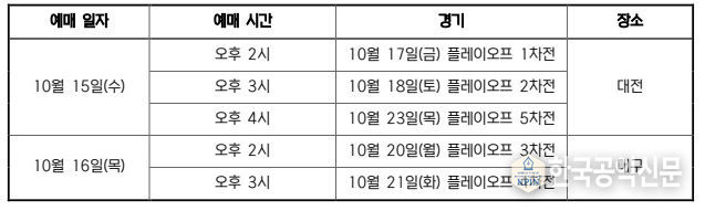 플레이오프 입장권은 포스트시즌 입장권 단독 판매사인 NOL 티켓 예매 홈페이지와 애플리케이션 그리고 NOL 티켓 고객센터(전화 1544-1555)를 통해 1인당 최대 4매까지 가능하다.