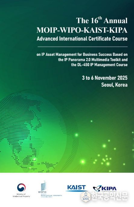 한국공익신문 관리자 기자 | 지식재산처는 세계지식재산기구(WIPO) 및 한국발명진흥회(KIPA)와 공동으로 11월 3일~ 6일까지 한국지식재산센터(서울 강남구)에서 '국제 지식재산 전문가 인증과정(AICC)'을 개최한다.