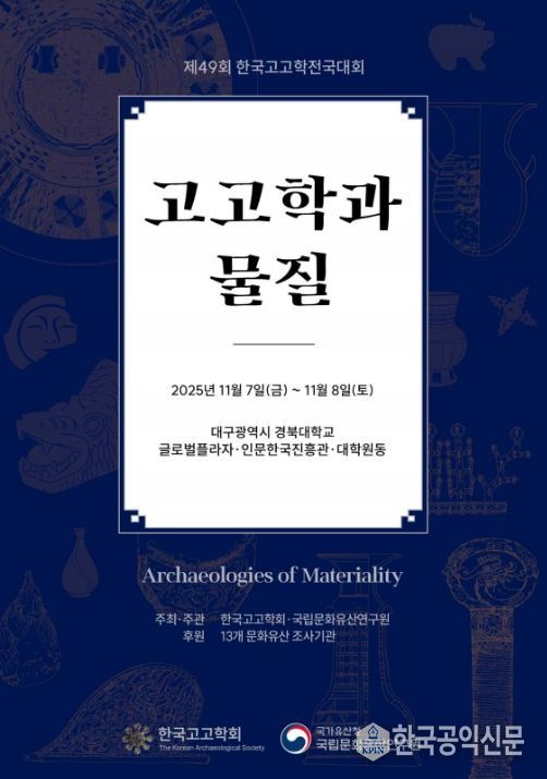 한국공익신문 관리자 기자 | 국가유산청 국립문화유산연구원은 한국고고학회와 함께 11월 7일과 8일 이틀간, 경북대학교(대구 북구)에서 ‘고고학과 물질’을 주제로 '제49회 한국고고학전국대회'를 공동 개최한다.