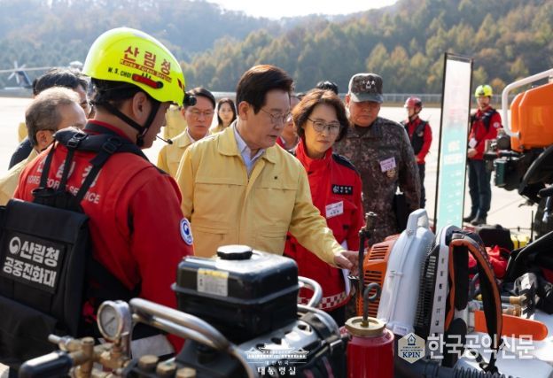 이 대통령은 먼저 강원 원주시에 위치한 산림청 산림항공본부를 찾아 산림청과 군(軍)의 산불 진화 헬기, 드론, 차량 등 핵심 장비를 점검했다.