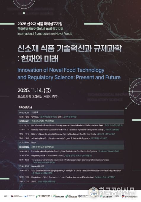 한국공익신문 관리자 기자 | 식품의약품안전처 소속 식품의약품안전평가원은 ‘신소재 식품 기술혁신과 규제과학 : 현재와 미래’를 주제로 11월 14일 포스트타워 대회의실(서울특별시 중구 소재)에서 ‘2025 신소재 식품 국제심포지엄’을 개최한다고 밝혔다.