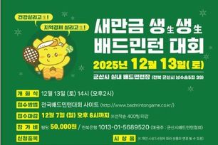 한국공익신문 관리자 기자 | 새만금개발청은 오는 12월 13일 군산 실내배드민턴장에서 새만금 지역 주민의 건강을 살리고(生), 경제도 살린다(生)는 의미로 ‘새만금 생生생生배드민턴대회’를 개최한다.