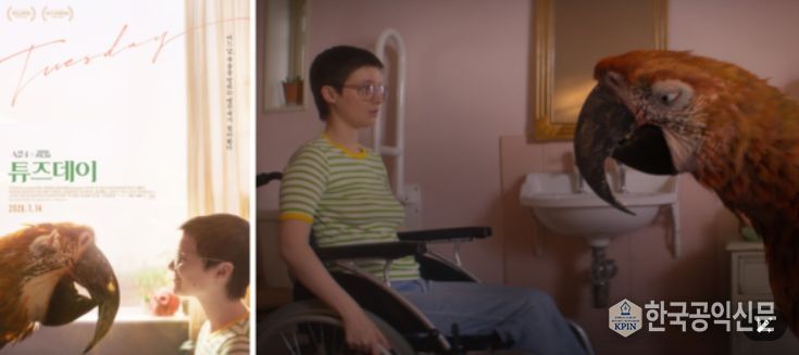 먼저 삶과 죽음에 관한 독특한 시선을 담은 영화 '튜즈데이'는 불치병에 걸린 ‘튜즈데이’와 점점 다가오는 딸의 죽음을 거부하는 엄마 ‘조라’ 앞에 모든 죽어가는 존재의 마지막 순간을 배웅하는 앵무새 ‘죽음’이 나타나며 벌어지는 A24 X BBC FILM의 독특한 휴먼 감동 판타지이다.