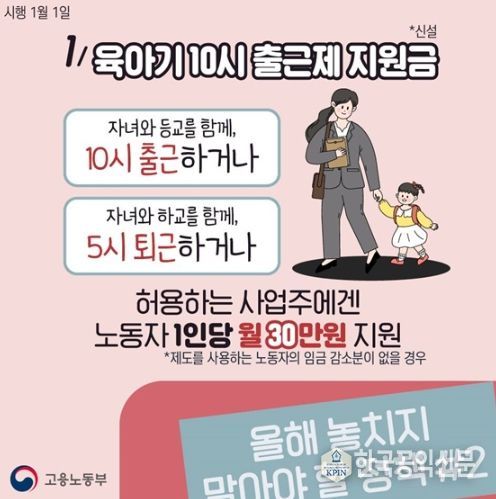 한국공익신문 관리자 기자 | 1. 육아기 10시 출근제 지원금(*신설)