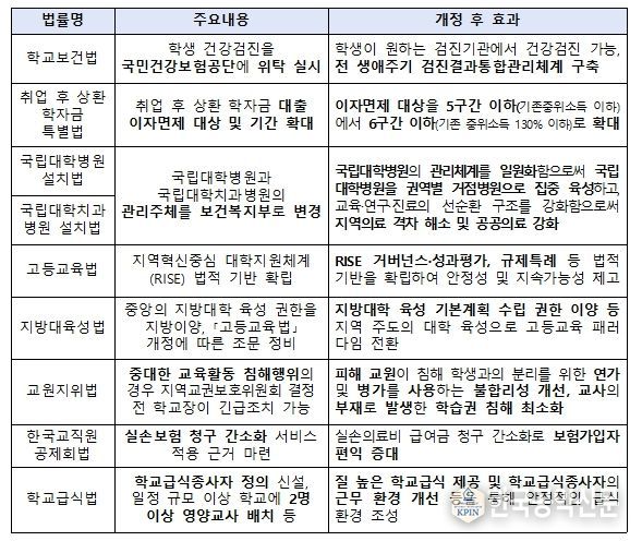 지역혁신중심 대학지원체계(RISE, 이하 라이즈)의 법적 기반 확립을 주요 내용으로, '고등교육법'과 '지방대육성법'('지방대학 및 지역균형인재 육성에 대한 법률')을 개정했다.