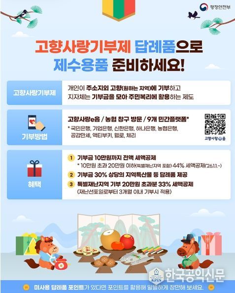 한국공익신문 관리자 기자 | 고향사랑기부제 답례품으로 제수용품 준비하세요!