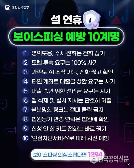 한국공익신문 관리자 기자 | 설 연휴 보이스피싱 예방 10계명