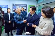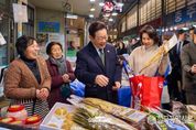 한국공익신문 관리자 기자 | 이재명 대통령과 김혜경 여사는 오늘 낮, 설 명절을 앞두고 충북 충주시에 위치한 무학시장을 찾아 지역 세밑 물가를 점검하고 상인들을 만나 현장 의견을 청취했다. 무학시장은 지난 1978년 노점상들의 정착을 위해 개설된 전통시장이며, 이번 방문은 설 민심을 청취하기 위한 민생 행보의 일환이다. 이 대통령과 김 여사는 시장 내 여러 상점을 들러 “새해 복 많이 받으세요”라며 인사를 했고, 상인과 시민들은 환호와 박수로 이 대통령 부부를 맞았다. 이 대통령 부부에게 더덕을 판매한 상인은 “덕분에 마수걸이를 한다”며 “오늘 장사가 잘될 것 같다”고 말해 웃음을 자아냈다. 다른 상인들도 “힘나게 해주셔서 감사하다”, “너무 고생 많으시다”며 인사를 전했다. 이 대통령 부부는 황태포, 시금치, 곶감과 깐밤 등 제수용품과 먹거리를 구입했고 백도라지, 마른 멸치, 배추전 등을 즉석에서 맛보기도 했다. 이 대통령 부부는 온누리상품권과 현금으로 결제했다. 김 여사가 물건을 고르는 사이 이 대통령은 상인들에게 “장사는 잘 되느냐”, “곧 설인데 어떠시냐”고 물었다. 정육점 사장