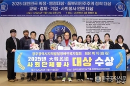 한국공익신문 한성영 기자 | 광주광역시지적발달장애인복지협회 백석(白石) 회장이 지난 11월 14일 광주 JS컨벤션에서 열린 한국언론미디어그룹 창립 9주년 기념식 및 2025 대한민국의정대상 시상식에서 ‘2025 대한민국 사회단체 봉사 대상’을 수상했다. 백 회장은 1992년 협회 창립 이래 30여 년간 발달장애인의 권익 옹호와 인권 보호, 자립역량 강화, 가족 중심 복지체계 구축, 지속 가능한 일자리 창출 및 전문인력 양성 등 지역사회 복지 인프라 확충에 헌신해 왔다. 그의 활동은 단순한 복지 지원을 넘어 발달장애인의 삶의 질 향상과 사회통합을 위한 구조적 기반을 마련하는 데 큰 기여를 했다는 평가를 받는다. 시상식에서 한국언론미디어그룹 한성영 회장은 “백석 회장님의 오랜 헌신은 지역사회의 울타리를 튼튼히 세우는 일이었으며 그분의 노고는 우리 공동체가 함께 기억해야 할 가치입니다”라며 축하의 뜻을 전했다. 이어 “이번 수상은 단순한 표창이 아니라 사회적 약자를 위한 지속적인 실천과 연대의 상징”이라고 강조했다. 백석 회장은 수상 소감에서 “이 상은 저 개인이 아닌 함께 걸어온 협회 가족과 지역사회 모두의 것”이라며 “앞으로도 발달장애인의 권익과 복지를 위해