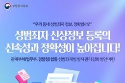 한국공익신문 관리자 기자 | "우리 동네 성범죄자 정보, 정확할까?!" 성범죄자 신상정보 등록의 신속성과 정확성이 높아집니다! - 관계부처(법무부, 경찰청) 합동 성범죄 재범 방지 관리 강화 방안 마련 ■ 성범죄에서 안전한 대한민국, 촘촘한 관리로 시작됩니다! - 서류가 아닌 '현장'을 직접 확인합니다! · 대면 점검 원칙 성범죄자 신상정보 등록 대상을 직접 만나 정보를 확인합니다! · 생활 흔적 확인 성범죄자의 실제 거주 여부를 면담과 현장 방문으로 꼼꼼히 체크합니다! · 현장 직접 검증 주소지와 실제 거주지의 일치 여부를 현장에서 직접 검증합니다! - 사라진 대상자는 찾아내고, 틀린 정보는 고치고! · 집중 점검 기간 운영 반기별로 소재불명자를 집중적으로 검거하여 사각지대를 해소합니다! · 정보 정정 청구 활성화 실거주지 정보가 다를 경우, 국민 누구나 '성범죄자 알림e' 누리집을 통해 정정을 요구할 수 있습니다! ☞ 더 궁금한 점이 있다면? 성범죄자 신상정보는 "성범죄자 알림e" 누리집과 앱을 통해 확인할 수 있습니다. [뉴스출처 : 성평등가족부]