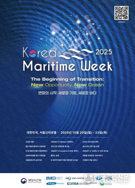 한국공익신문 관리자 기자 | 해양수산부는 10월 20일부터 23일까지 4일간 서울신라호텔에서 ‘2025 한국해사주간(2025 Korea Maritime Week)’을 개최한다고 밝혔다.