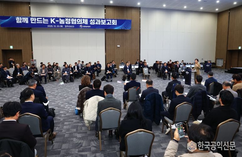 한국공익신문 관리자 기자 | 농림축산식품부는 12월 22일 오후 청주오스코(OSCO)에서 '함께 만드는 K-농정협의체' 성과보고회를 개최했다. 이번 행사에는 K-농정협의체 공동대표인 송미령 농식품부 장관과 류진호 한국4-H청년농업인연합회 회장을 비롯한 협의체 위원 120여 명과 농어업농어촌특별위원회 김호 위원장을 포함한 관계자 30여 명 등 총 150여 명이 참석했다.