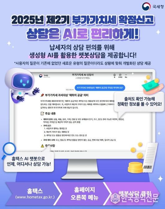 한국공익신문 관리자 기자 | ■ 2025년 제2기 부가가치세 확정신고 상담은 AI로 편리하게!