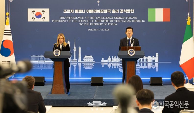 한국공익신문 관리자 기자 | 이재명 대통령은 19일 조르자 멜로니 이탈리아 총리와의 정상회담 뒤 "저와 멜로니 총리는 전략적 동반자 명칭에 부합하는 미래지향적 수준으로 양국 관계를 더욱 발전시켜 나가기로 합의했다"고 밝혔다.