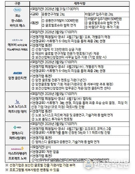 한국공익신문 관리자 기자 | 보건복지부와 한국보건산업진흥원은 제약바이오 분야 글로벌 오픈이노베이션 활성화를 위해 ‘2026년 글로벌 선도기업 협업 프로그램(‘K-바이오파마 넥스트 브리지’) 참가기업을 모집한다고 밝혔다.