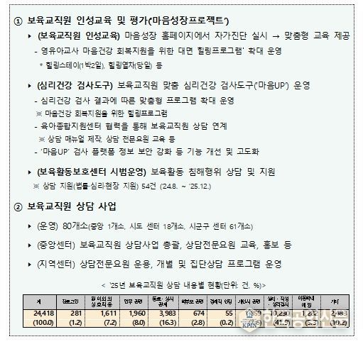 김정연 영유아지원관은 “이번 시행령 개정으로 보육교직원의 정당한 보육활동을 보호·지원하기 위한 제도적 기반을 마련했다.”라고 말하며, “현재 2개 시도(서울, 경기)에서 시도육아종합지원센터 내 전담 조직을 운영 중으로, 지방자치단체와의 협의를 거쳐 전담 조직의 전국 확대를 추진할 예정이다. 앞으로 보육교직원이 부당한 보육활동 침해 및 민원·진정에 대한 부담을 덜고 보육활동에 전념할 수 있도록 노력하겠다.”라고 밝혔다.