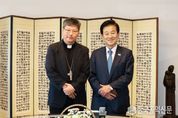 한국공익신문 관리자 기자 | 정동영 통일부 장관은 10월 23일 명동대성당에서 서울대교구장 정순택 대주교를 예방하고, ‘평화적 두 국가’에 대한 공감대를 형성했다. 정순택 대주교는 “장관님께서 통일을 염두하지 않은 것이 아니라, 통일을 향해 나아가는 과정 안에서의 평화로운 두 국가론을 말씀하셨다”며, “그 부분에서 개인적으로 공감하는 부분이 많았다”고 밝혔다. “궁극적으로 한반도의 평화적 통일을 지향하면서, 함께 공존하고 번영해야 한다는 것이 상당히 공감이 된다”고 덧붙였다. 정 장관은 정 대주교의 공감에 사의를 표하고, “평화적 두 국가론의 방점은 ‘평화적’에 있다”며, 남북한 특수관계 속에서의 평화적 두 국가임을 강조했다. 아울러 “교류와 협력의 기초 위에서 사람, 돈, 물자가 자유롭게 오가면 자유 왕래의 시대이고, 이는 곧 사실상의 통일”이라며, “법적, 정치적 통일 전에 사실상의 통일이 먼저 와야한다”고 설명했다. 정 대주교는 “대화가 평화로 가는 중요한 첫 걸음인 만큼, 끊겨있던 대화의 창구를 복원하는 것이 필요하다”고 말했다. 정 장관은 “2027 서울 세계청년대