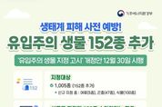 한국공익신문 관리자 기자 | 생태계 피해 사전 예방! 유입주의 생물 152종 추가 - '유입주의 생물 지정 고시' 개정안 12월 30일 시행 ■ 지정대상 - 1,005종 (152종 추가) · 신규 지정 종: 어류(5종), 곤충(47종), 식물(100종) ■ 신규로 지정된 152종 수입하려는 경우 - 사전 관할 유역(지방)환경청 승인 필요 ※ 불법 수입 시 2년 이하 징역 또는 2천만원 이하 벌금 부과 ■ 확인방법 - 기후에너지환경부 누리집 및 한국외래생물정보시스템(2026년 1월 공개) 생태계 보전을 위해 유입주의 생물 수입에 각별한 주의를 기울여 주세요! [뉴스출처 : 기후에너지환경부]