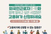 한국공익신문 관리자 기자 | 외국인근로자(E-9)와 함께 일하고 싶은 사업장은 고용허가 신청하세요. - 신청기간 2025.11.24.(월)~11.28.(금) ■ 고용허가제 신청할 수 있는 업종은? 제조업, 조선업, 건설업, 농축산·어업, 서비스업, 임업, 광업 고용허가서 발급신청서를 작성하여 고용24 누리집 또는 고용센터에 제출하세요. ■ '25년 5회차 신청 일정은? '25.11.24.(월)~11.28.(금): 사업장 고용허가 신청 → 12.12.(금): 사업장 선정 발표 → 제조·조선·광업 12.15.(월)~17.(수) 그 외 12.18.(목)~12.22.(월): 고용허가서 발급 → '26.1월~: 외국인 근로자 입국 [뉴스출처 : 고용노동부]