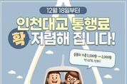 한국공익신문 관리자 기자 | 12월 18일부터 인천대교 통행료 확 저렴해 집니다! - 승용차기준 5,500원 → 2,000원(약 63% 인하!) ■ 언제부터, 얼마나 달라지나요? 2025년 12월 18일 00시 부터 시행 인천대교 통행료 평균 인하폭은 63%… ■ 차종별 통행료 한눈에 보기 · 경차: (인하 전) 2,750원 → (인하 후) 1,000원(▼1,750원) · 소형: (인하 전) 5,500원 → (인하 후) 2,000원(▼3,500원) · 중형: (인하 전) 9,400원 → (인하 후) 3,500원(▼5,900원) · 대형: (인하 전) 12,200원 → (인하 후) 4,500원(▼7,700원) ■ 차종 한눈에 구별하기 (경차) · 배기량 1,000cc 미만 · 길이 3.6m·너비 1.6m·높이 2.0m 이하 (소형) · 승용차, 16인승 이하 승합차 · 2.5톤 미만 화물차 · 2축 차량 / 윤폭 279.4mm 이하 (중형) · 17인승 이상 버스 · 2.5톤 이상~10톤 미만 화물차 · 2축 차량 / 윤폭 279.4mm 초과 (대형) · 10톤 이상 대형