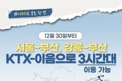 한국공익신문 관리자 기자 | 12월 30일부터 서울~부산, 강릉~부산 KTX-이음으로 3시간대 이동 가능 ■ 중앙선 운행 횟수 대폭 확대 청량리~부전 구간: 하루 총 6회→18회, 3배 증편 ■ 동해선 부전(부산)~강릉 운행 소요시간 3시간 54분으로, 기존 ITX-마음 운행(5시간 4분)대비 약 1시간 10분 단축 [뉴스출처 : 국토교통부]